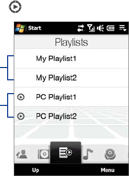 Windows Media® Player playlists. Playlists that are in Windows Media® Player Mobile’s Library (which