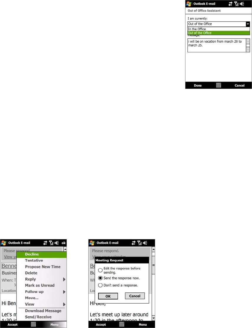 Accept to reply and accept the meeting request, or tap Menu > Decline if you cannot attend the
