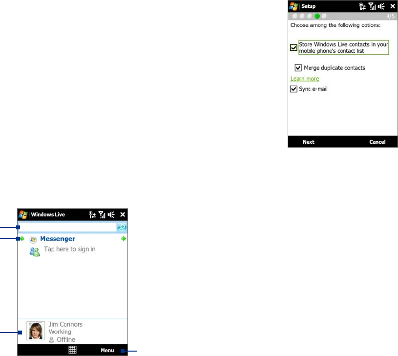 list and to Windows Live™ Messenger on your device.