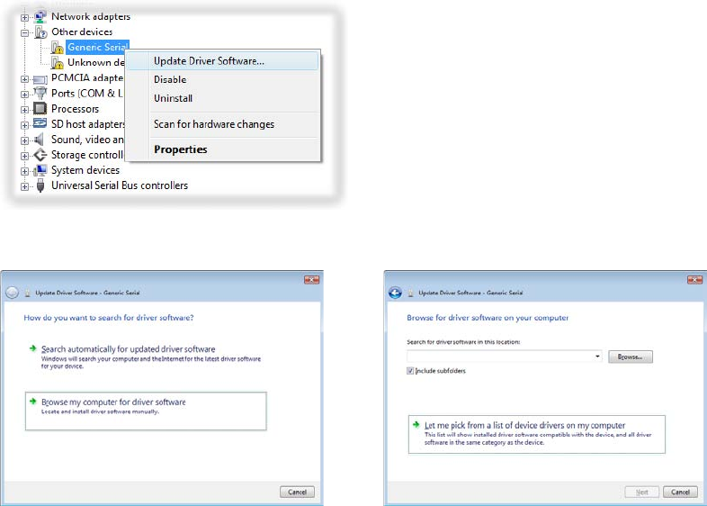 4. Click Browse my computer for driver software, then click Let me pick from a list of device drivers