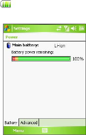 • Tap the battery level icon ( ) on the Quick Launcher. The Power Settings screen will then