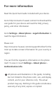 For more information Read the Quick Start Guide included with your device. Go to http://consumer.huawei.com/en/ to download the user guide for your device and read the FAQ, privacy policy, and other information. Go to Settings > About phone > Legal information to read the legal information. Please visit http://consumer.huawei.com/en/support/hotline/ for the most up-to-date contact information for your country or region. You can find the regulatory information on the phone itself.