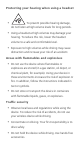 • When you must make or answer a call, pull off the road safely and park the vehicle first. • RF signals may affect the electronic systems of motor vehicles. For more information, consult the vehicle manufacturer. • Do not place the device over the air bag or in the air bag deployment area in a motor vehicle. Doing so may hurt you because of the strong force when the air bag inflates. • Wireless devices may interfere with the airplane's flight system.
