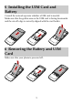 5 Installing the UIM Card and Battery Consult the network operator whether a UIM card is needed. Make sure that the golden area on the UIM card is facing downwards and the cut-off edge is correctly aligned with the card holder. 6 Removing the Battery and UIM Card Make sure that your phone is powered off.