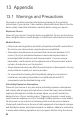 • If the device screen is broken by colliding with hard objects, do not touch or
