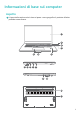 Informazioni di base sul computer 1 Display Visualizza il desktop del computer. 2 Pulsante di accensione a impronta digitale Dopo aver registrato un'impronta digitale, è sufficiente premere il pulsante di accensione con il dito registrato per accendere e sbloccare il computer senza dover inserire una password. 3 Fotocamera incassata Premi il pulsante per rivelare la fotocamera. Quindi potrai usarla in Fotocamera o altre app per scattare foto o fare chat video.