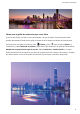 Cámara Cómo usar el modo Estela de estrellas para capturar la belleza de las estrellas El modo Estela de estrellas permite usar la cámara para capturar el movimiento de las estrellas en el cielo nocturno. l Para obtener mejores resultados, seleccione una noche sin nubes y un lugar sin contaminación lumínica y con una vista despejada del cielo. l Coloque el dispositivo en un trípode o sobre una superficie firme para que no se mueva durante la exposición.