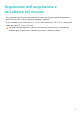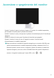 Aspetto e porte del monitor 1 HUAWEI Smart Bar • Quando lo schermo è spento o in modalità sospensione, puoi toccare con un dito la HUAWEI Smart Bar per attivare lo schermo. • Quando il monitor è acceso e collegato a un dispositivo esterno in modalità proiezione wireless o cablata, il monitor mostrerà lo schermo del dispositivo esterno. In questo caso, se non viene visualizzato il menu OSD, puoi: • Scorrere con un dito sulla HUAWEI Smart Bar per regolare il volume dell'altoparlante del monitor.