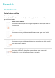 Conteúdo Essenciais Gestos básicos Bloquear e desbloquear o ecrã Fique a conhecer o ecrã inicial Ícones de notificação e estado Painel de controlo Capturas de ecrã e Gravação do ecrã Introduzir texto Multijanela 1 4 5 6 7 12 13 14 Funcionalidades inteligentes AI Lens HiTouch Colaboração de vários dispositivos Controlador de multimédia 19 19 19 21 Câmara e galeria Tirar fotografias Filmar com os Modos de retrato, noturno e de grande abertura Câmara AI Modo profissional Gravar vídeos Fotografia em lapso d
