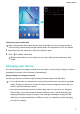 Contents Foreword Getting Started Initial setup Connecting to the Internet Charging your device 2 2 3 Screen and Display Home screen Notification panel and status bar Split-screen mode Using motion gestures Eye comfort mode Display settings 5 8 9 10 11 12 Network and Sharing Using mobile data Sharing your mobile Internet with other devices Connecting to the Internet using Wi-Fi Connecting to other devices using Bluetooth Using Huawei Share to transfer files between two Huawei devices 14 14 16 16 17 Se