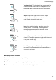 Camera and Gallery l Rotate an image: Touch and swipe the screen to adjust the angle of rotation. Portion of image to preserve after rotation Swipe screen to rotate image Undo changes Rotate vertically Mirror image l Crop an image : Touch to select the crop ratio . Drag the dotted edges to crop the image to the desired size. Crop selection Crop grid corner Crop proportions l Add a filter: Touch and select the desired filter. l Accentuate colours: Touch .