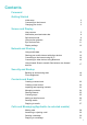Contents Foreword Getting Started Initial setup Connecting to the Internet Charging your device 2 2 3 Screen and Display Home screen Notification panel and status bar Split-screen mode Using motion gestures Eye comfort mode Display settings 5 8 9 10 11 12 Network and Sharing Using mobile data Sharing your mobile Internet with other devices Connecting to the Internet using Wi-Fi Connecting to other devices using Bluetooth Using Huawei Share to transfer files between two Huawei devices 14 14 16 16 17 Se