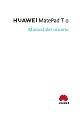 Esta guía solo tiene fines de referencia. El producto adquirido puede presentar diferenciasen cuanto a color, tamaño y diseño de la pantalla, etcétera. Ninguna declaración, información ni recomendación contenida en esta guía constituye garantía de ningún tipo,expresa ni implícita. Consulte en https://consumer.huawei.com/en/support/hotline los datos actualizados de Líneas de Atención al Cliente y Correos electrónicos para su país y región. Modelo: KOB2-L09 KOB2-W09 EMUI 10.