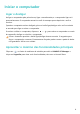 Introdução ao seu computador • Premir a tecla Fn e o indicador acender-se-á. As teclas F irão então funcionar como teclas de função. Para voltar ao modo de tecla de atalho (tecla de atalho), prima a tecla Fn e o indicador apagar-se-á. • Para que as teclas F funcionem como teclas de função por defeito, abra o HUAWEI PC Manager e aceda a Settings > System Settings para ativar a prioridade das teclas de função. Para mudar de volta para o modo de teclas de atalho, ative a prioridade das teclas de atalho.