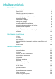Inhaltsverzeichnis Huawei Vlogs Highlights 35 36 Apps Kontakte Telefon Nachrichten Kalender Uhr Memo Rekorder E-Mail Rechner Taschenlampe Kompass App-Twin Schnell auf häufig verwendete App-Funktionen zugreifen Tabletmanager Phone Clone Tipps 38 39 42 48 50 51 52 53 54 58 58 59 59 59 60 61 61 Apps Einstellungen WLAN Bluetooth Mobile Daten Weitere Verbindungen Startbildschirm&Hintergrund Anzeige&Helligkeit Töne&Vibration Benachrichtigungen Biometrie&Passwort Apps Akku Speicher Sicherheit Privatsphäre Be