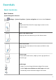 Essentials 1 Knock the screen with a knuckle and hold to draw an outline around the part of the screen that you want to capture. Make sure that your knuckle does not leave the screen. 2 The screen will display the movement trajectory of your knuckle and take a screenshot of the selected area. You can then: 3 • Drag the frame to the desired position or resize it. • Touch a shape icon to determine the shape of the partial screenshot. Touch to save the screenshot.