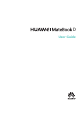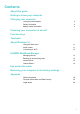 Contents About this guide Getting to know your computer Charging your computer Using the power adapter Safety information Battery status information 4 4 4 Powering your computer on and off Function keys Touchpad About Windows 10 Using the Start menu Action center Connecting to Wi-Fi 11 11 12 HUAWEI MateBook Manager Managing drivers Backing up and restoring data Instant Online * Huawei Share * 13 13 14 14 Eye protection mode Restoring your computer to the factory settings * Appendix Safety information