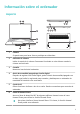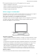 Información sobre el ordenador Aspecto 1 2 11 3 8 9 10 12 13 14 4 5 15 华为分享 7 1 6 Cámara Se puede usar para hacer fotos o participar en videochats. 2 Indicador de cámara Indica el estado de la cámara. Permanece iluminado en color blanco cuando la cámara está activada. 3 Pantalla Muestra el escritorio del ordenador.