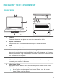 Découvrir votre ordinateur Apparence 1 2 11 3 8 9 10 12 13 14 4 5 15 华为分享 7 1 6 Caméra Permettre de prendre des photos ou d'avoir des conversations vidéo. 2 Voyant de la caméra Indiquer l'état de la caméra. Est blanc fixe lorsque la caméra est active. 3 Écran Afficher le bureau de l'ordinateur.