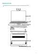 Appearance 1 Hidden ambient light sensor Detects ambient light to automatically adjust screen brightness. Do not cover the ambient light sensor. If you need to use a screen protector, choose one with a purpose-built hole for the ambient light sensor. 2 Camera Can be used to take photos or make video chats. 3 Camera indicator Indicates the camera's status. Lights up steady white when the camera is active. 4 Display Displays the computer desktop.
