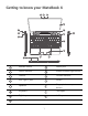 Getting to know your MateBook X Headset socket Power port Power indicator Hidden ambient light sensor Camera Camera indicator USB Type-C port Screen Speakers Fingerprint sensor power button Keyboard Touchpad Right key Left key Microphone 1