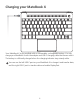 Charging your MateBook X Your MateBook X is pre-installed with an irremovable, rechargeable battery. You can charge your MateBook X with the adapter and USB-C charging cable that comes with it. The battery is sufficiently charged when the charging indicator stays steady white. You can use the left USB-C port on your MateBook X to charge it and transfer data, and the right USB-C port to transfer data and enable DisplayPort.