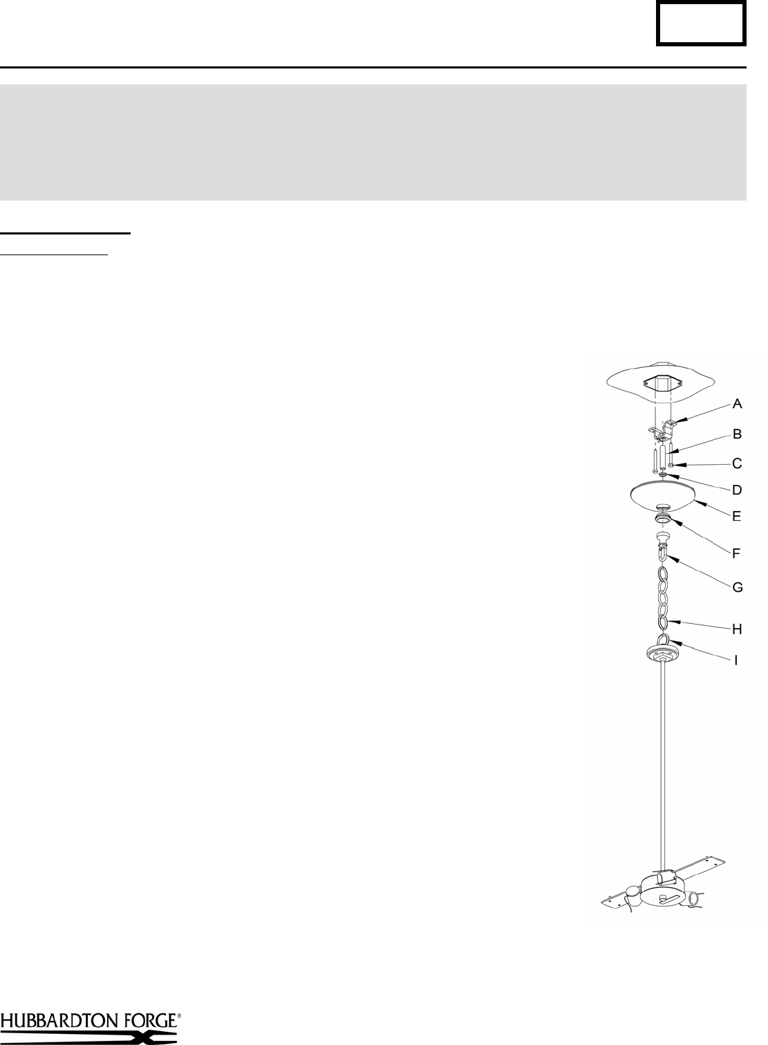 4. Attach one end of the chain (H) to the fixture loop (I).