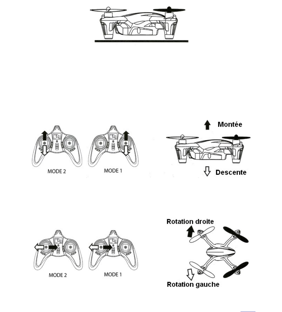 AVERTISSEMENT : Pour éviter de perdre le contrôle bougez les joysticks doucement !