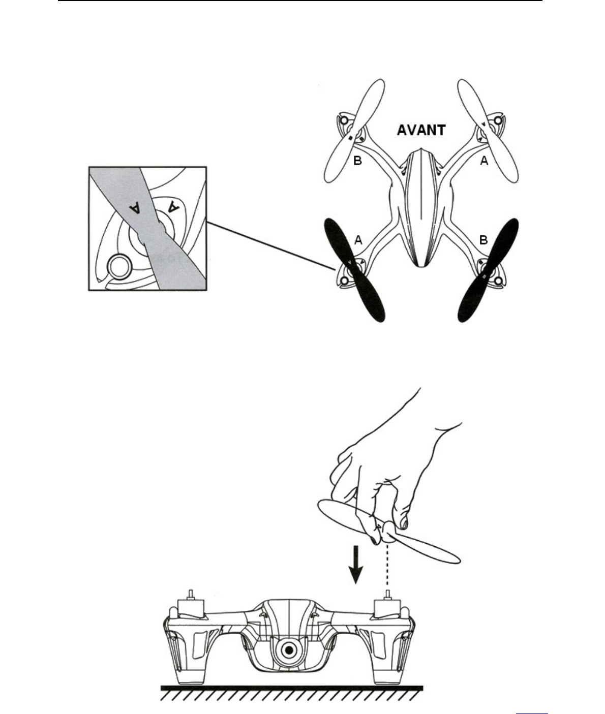du remplacement des hélices assurez-vous de les positionner comme indiqué. Le X4