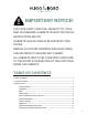 IMPORTANT NOTICE! FOR YOUR SAFETY AND THE LONGEVITY OF YOUR NEW HUGO&BORG CABINETS, PLEASE FOLLOW THE INSTRUCTIONS BELOW: CABINETS SHOULD ALWAYS BE MOVED BY TWO PEOPLE. REMOVE ALL DOORS, DRAWERS AND ADJUSTABLE SHELVES PRIOR TO MOVING ANY CABINET. ALL CABINETS NEED TO BE COMPLETELY INSTALLED TO THE WOOD STUDS BEFORE PUTTING ANY ITEMS INSIDE THE CABINETS. TABLE OF CONTENTS 1. SAFETY & LIABILITY ...................................................................................................................