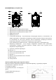 ЗОВНІШНІЙ ВИГЛЯД ПРОСТРОЮ 1 2 3 4 12 13 5 6 7 14 15 16 8 9 10 11 1. Ручка для перенесення 2. Перемикач вибору режиму зварювання 3. Перемикач вибору режиму зварювання Dc / pulse 4. Перемикач вибору режиму зварювання 2Т / 4Т 5. Цифровий дисплей 6. Індикатор «Мережа» 7. Сигнальний індикатор - коли індикатор температури включений, він показує, що апарат перевантажений, а внутрішня температура занадто висока. Апарат вимкнеться, але вентилятор все ще буде працювати.