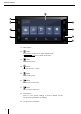 Startup Poniendo el dispositivo en funcionamiento Menú principal En el menú principal, presiona los botones en la pantalla táctil para acceder a las diferentes fuentes y modos de operación. Encendiendo / apagando Enciendendo / apagando con el botón Para el encendido, pulse el botón. Para el apagado, mantenga pulsado el durante más de 2 segundos. botón Presiona el [ ] botón. -OEn la fuente actual, presione la esquina superior izquierda. El menu principal es mostrado.