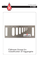 Table 1. Dimensions of Thickness Gauge. Aggregate Size-fraction BS Test Sieve Nominal Aperature Size 100% Passing 100% Retained Thickess Gauge Width of Slot Minimum Mass for Subdivision 63.0mm 50.0mm 33.9 ± 0.3mm 50kg 50.0mm 37.5mm 26.3 ± 0.3mm 35kg 37.5mm 28.0mm 19.7 ± 0.3mm 15kg 28.0mm 20.0mm 14.4 ± 0.15mm 5kg 20.0mm 14.0mm 10.2 ± 0.15mm 2kg 14.0mm 10.0mm 7.2 ± 0.1mm 1kg 10.0mm 6.30mm 4.9 ± 0.1mm 0.5kg Warranty Humboldt Mfg. Co.