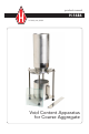INTRODUCTION The void content of coarse aggregate measurement provides an indication of angularity, sphericity and surface texture compared to other aggregates of the same grading. The test aggregate is allowed to free fall 115mm from the funnel bottom of a cylindrical hopper into a 154mm diameter by 160mm high cylindrical measure. Excess heaped aggregate is struck off using a bar, and the miss is measured.