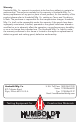 Warranty Humboldt Mfg. Co. warrants its products to be free from defects in material or workmanship. The exclusive remedy for this warranty is Humboldt Mfg. Co., factory replacement of any part or parts of such product, for the warranty of this product please refer to Humboldt Mfg. Co. catalog on Terms and Conditions of Sale. The purchaser is responsible for the transportation charges. Humboldt Mfg. Co.