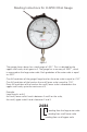 Reading Instructions for H-3250.3 Dial Gauge figure 1 The gauge shown above has a total range of .400". This is indicated by the upper small scale, which goes to 4. The gauge has a accuracy of .0001", which is measured on the large outer scale. Each gradation of the outer scale is equal to .0001" One full revolution of the gauge’s large hand on the outer scale is equal to .010" One full revolution of the hand on the small, lower scale is equal to .