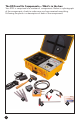1. The Case: The Electrical Density Gauge is built into its case, providing storage of all the gauge components allowing for easy transportation. The actual gauge is built into the right side of the case and accessories are stored on the left side except for the Dart Template, which is stored in the lid of the case. 2. Dart Template: The Dart Template is located in the lid of the EDG. It is secured with velcro to keep it in place. To remove unfasten the velcro straps. 3.