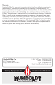 Warranty Humboldt Mfg. Co. warrants its products to be free from defects in material or workmanship. The exclusive remedy for this warranty is Humboldt Mfg. Co., factory replacement of any part or parts of such product, for the warranty of this product please refer to Humboldt Mfg. Co. catalog on Terms and Conditions of Sale. The purchaser is responsible for the transportation charges. Humboldt Mfg. Co.