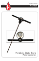 Portable, Static Cone Penetrometer Information The H-4210A Static Cone Penetrometer is an unparalleled device for measuring soil consistency. It is specifically designed for use in fine grained, soft soils to depths as much as 30 feet. The basic unit is totally self contained, weighs 5 Ib, and is set up for a 2-ft maximum depth. It is intended to be operated by one person and requires no auxiliary equipment. The device is extremely rugged and is built for day-in, day-out use.