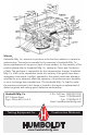 Warranty Humboldt Mfg. Co. warrants its products to be free from defects in material or workmanship. The exclusive remedy for this warranty is Humboldt Mfg. Co., factory replacement of any part or parts of such product, for the warranty of this product please refer to Humboldt Mfg. Co. catalog on Terms and Conditions of Sale. The purchaser is responsible for the transportation charges. Humboldt Mfg. Co.