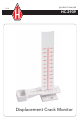 Displacement Crack Monitors measure displacement (out of plane) and horizontal movement across a crack. The Displacement Crack Monitor consists of three components: a graduated ruler, a top plate (calibrated) and a bottom plate (not calibrated). It is only the top and bottom plate that are fixed across a crack. The ruler is not left on the gauge, but is only used when taking readings. Fixing Instructions 1.