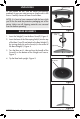 Unpacking (2) Base Cover As you unpack the fan, save the carton and packing materials in case you want to move or ship the unit in the future. Carefully remove all items from the box. NOTE: It is best to have someone hold the box while you lift the fan and the protective packaging out of the carton. Make sure all shipping materials are removed from fan before operating. (1) Base Weight Figure 3. Base Assembly 1. Insert the Weight(1) into the Base Cover(2). Figure 3. 2.