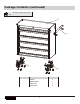 Assembly 2 1 Attaching the casters □ Be sure the drawers are locked and lay the cabinet (A) □ □ Attach the swivel casters (D) to the unit, on the same side as the handle, inserting bolts (AA) through washers (BB),the swivel casters(D) and into the cabinet (A). □ □ □ Tighten with a wrench. Repeat this process for the xed casters (C) on the opposite side of the cabinet (A). Return the cabinet (A) to its upright position.