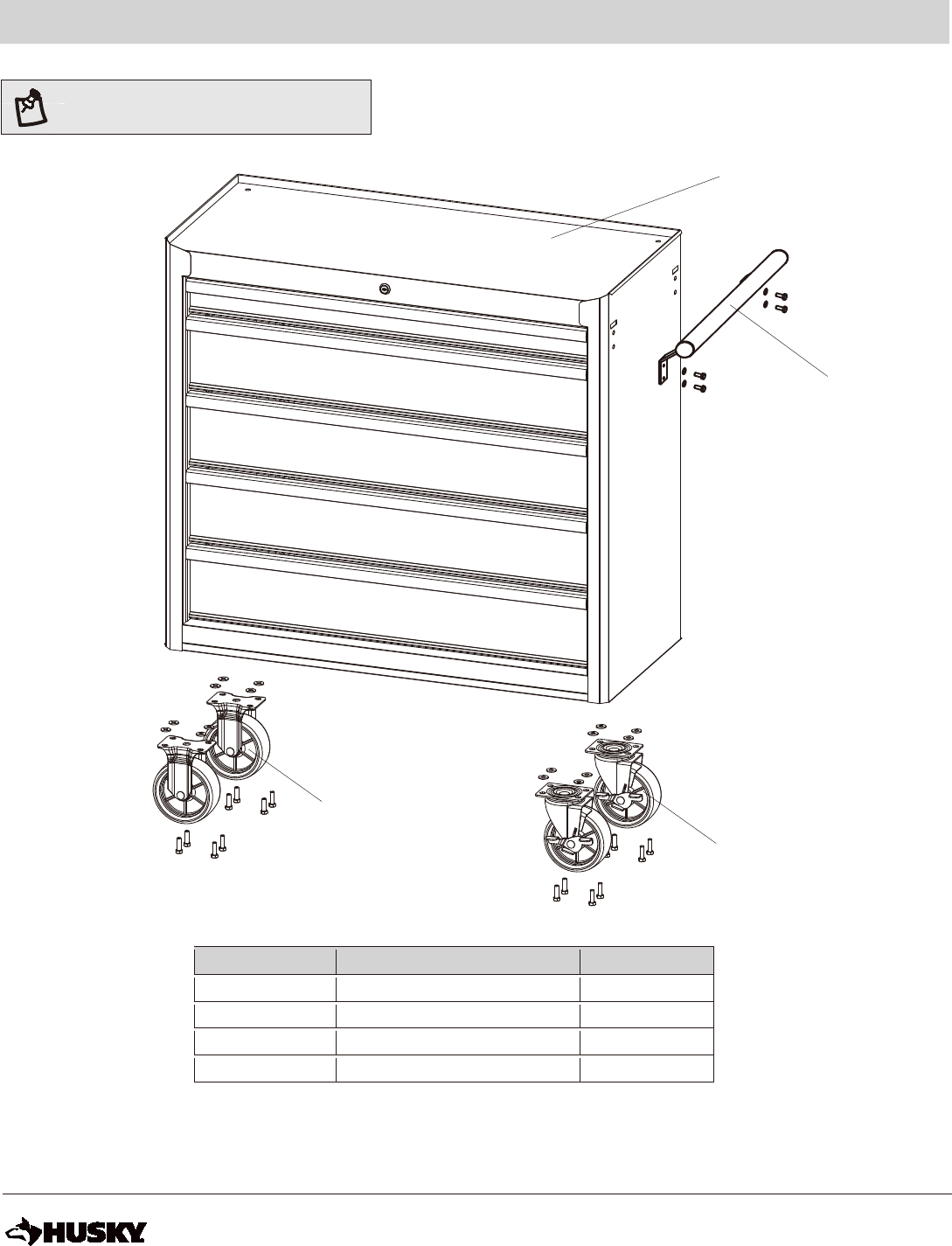 Tools Required Adjustable Wrench or Allen wrench Package Contents HARDWARE INCLUDED NOTE: Hardware not shown to actual size.