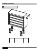 Tools Required Adjustable Wrench or Allen wrench Package Contents HARDWARE INCLUDED NOTE: Hardware not shown to actual size. AA Part AA BB CC DD BB Description M8 x 25 bolt Washer M6 x 16 bolt Washer CC DD Quantity 16 16 4 4 Assembly 1 Attaching the casters 2 □ Be sure the drawers are locked and lay the cabinet (A) □ □ Attach the swivel casters (D) to the unit, on the same side as the handle, inserting bolts (AA) through washers (BB),the swivel casters(D) and into the cabinet (A).