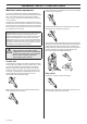 ASSEMBLY Cable adjustment Spreading the load on your shoulders • Throttle cable should be paralleled to flexible shaft. In case of twisting, they should be restored by parallel. • Throttle cable should be adjusted under the bended flexible shaft. A well-adjusted harness and machine makes work much easier. Adjust the harness for the best working position. Tension the side straps so that the weight is evenly distributed across both shoulders.