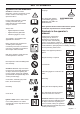 KEY TO SYMBOLS Symbols on the machine: Air purge WARNING! Chainsaws can be dangerous! Careless or incorrect use can result in serious or fatal injury to the operator or others. Please read the operator’s manual carefully and make sure you understand the instructions before using the machine. Always wear: • Approved protective helmet • Approved hearing protection • Protective goggles or a visor This product is in accordance with applicable EC directives.