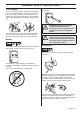 ASSEMBLY Fitting the main body labels. If they are moved outside of this area, it can cause the machine to be imbalanced, which can be dangerous. Connect the engine (A) to the tube (B) with four screws (C). A (A) Arrow labels Connecting throttle cable and stop switch wires Assembling the handlebar and throttle • • 1 Remove the air filter cover. 2 Insert the throttle cable (A) to the end of the adjuster (B).