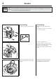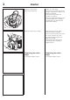 1 Starter Remove the spring cassette. ! Remove the two bolts holding the spring cassette and remove the cassette for replacement if necessary. WARNING! Wear protective glasses. The return spring can fly out and cause personal injury if improperly handled. Assembly Assembly Clean requisite parts and assemble in the reverse order as set out for dismantling. Clean all components before assembly: Change return springs, starter pulley and starter cord as needed.