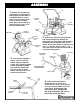 ASSEMBLY Leg 1. Remove the spreader and components from carton and place hopper up-side down on a padded surface as shown. Insert ends of leg into handle brace as shown and align holes. Attach brace and leg to frame using (4) 1/4-20 x 2 1/4” hex bolts and locknuts. 3/16 Dia. x 2” Cotter Pin Drive Wheel 1/4-20 X 2” Hex Bolt 1/4-20 LOCKNUT Handle Brace 5/32 Dia. x 1 1/4” Cotter Pin Free Turning Wheel 2. Slide wheels onto end of axle with the hub facing toward frame.